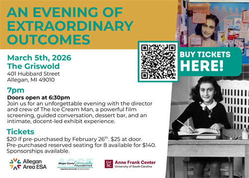 Following the film, guests will take part in a guided conversation designed to encourage thoughtful dialogue and reflection around courage, justice, and the power of individual choices. The evening will conclude with a dessert bar and an intimate, youth docent-led viewing of the Anne Frank exhibit - offering space to connect the film’s themes with history and our lives today.