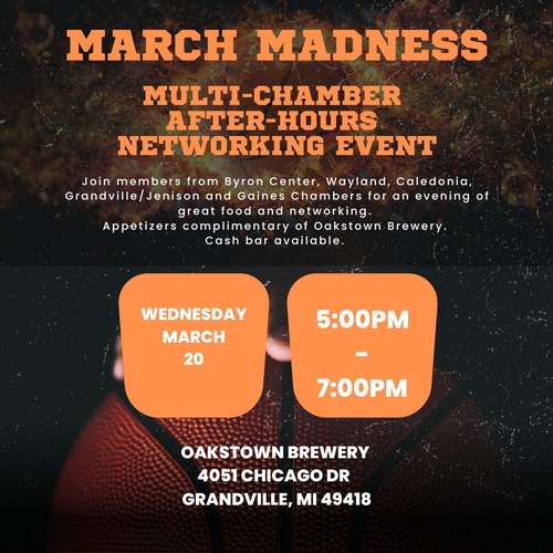 Join us for a multi-chamber event combining members from the West Michigan Chamber Connect Group consisting of: Byron Center, Wayland, Caledonia, Grandville/Jenison and Gaines Chambers for an evening of networking.